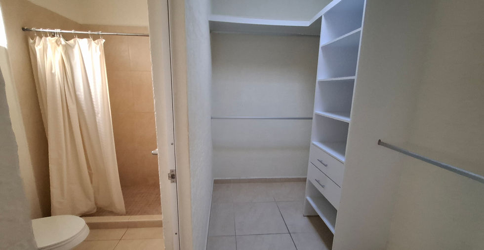 Casa frente a la alberca y terraza común, modelo Flamboyan con estancia con ventanal a jardin posterior y patio de lavado, amplia cocina con barra, recamara principal con walk in closet/vestidor y baño y 2 Equipada con persianas, mini splits y ventiladores