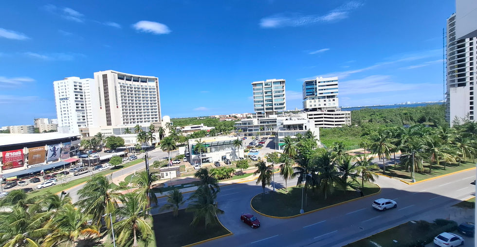 Amplio departamento con una superficie de 115 mts esquinero en piso 9 con una vista extraordinaria a Laguna Nichupté y Mar Caribe desde la Terraza y Recámara Principal, así como unos atardeceres magníficos y vista a la ciudad desde la Cocina y Recamara secundaria.
